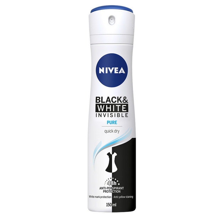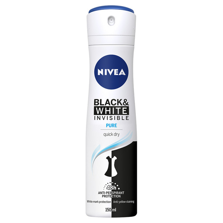 اسپری ضد تعریق زنانه نیوآ مدل Black And White Invisible Pure حجم 150 میلی لیتر