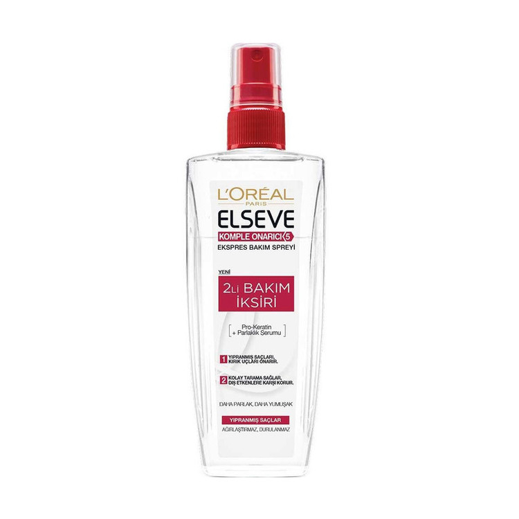 اسپری دوفاز مو برند لورآل مدل «5 Complete Repair» یکی از محصولات جدید برند Loreal پاریس است. محفظهی اسپری پلاستیکی است و مادهی درونش به خوبی دیده میشود که استفاده از آن بسیار ساده و آسان است. این اسپری دوفاز حجمی معادل 200 میلیلیتر دارد که بر روی موهای سر اسپری شده و به سرعت تاثیر خود را نشان خواهد داد. اسپری دو فاز لورآل Complete Repair خاصیت آبرسان دارد و مانند یک نرم کنندهی قوی عمل میکند که موها را نرم، لطیف و خوش حالت میکند و تاثیر بسزایی در سهولت شانه کردن موها و بازکردن گرههای مو دارد. موجب درخشش و زیبایی موها میشوند. از بهترین ویژگیهای اسپری دوفاز لورآل این است که پس از استفاده نیازی به شستوشو و آبکشی موها نیست و ماندن ماده بر روی موها مشکلی ایجاد نکرده و موها را چرب نمیکند. این اسپری با ایجاد یک لایهی محافظ بر روی موها از ایجاد الکتریسیتهی ساکن میان تارهای مو جلوگیری میکند.