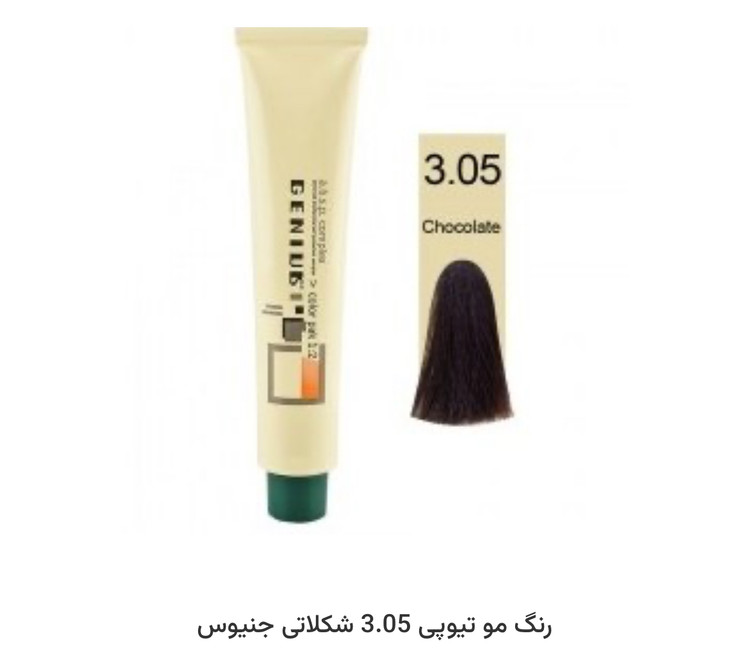 "خرید بهترین رنگ مو تیوپی 3.05 شکلاتی جنیوس در پوست مو بیوتی ارسال سریع"