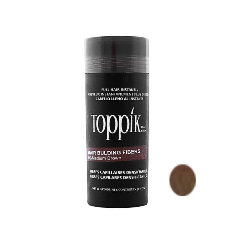 پودر پرپشت کننده مو تاپیک هیر فیلر کد 05 وزن 25 گرم رنگ قهوه ای متوسط