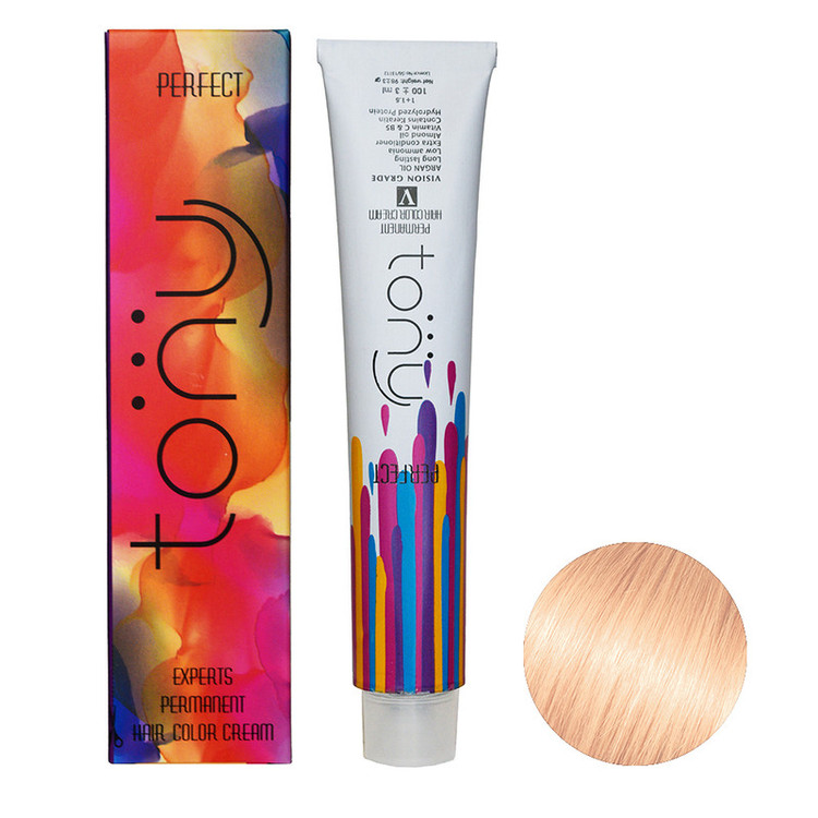 رنگ موی تونی پرفکت(ویژن گرید) سرشار از روغن های آرگان، بادام، فندوق، کنجد، سبوس برنج و ویتامین های B5 ، C ، کراتین و پروتین هیدرولیز شده می باشد. ۱۰۰ میلی لیتر از رنگ مـوی تونی پرفکت را در ظرف غیر فلزی بریزید ۱۵۰ میلی لیتر کرم اکسیدان انتخاب شده را اضـافه کنید، سپس ترکیب را آن قـدر بهم بزنید که مخلوط یکنواختی به دست آید. نکته: ترکیب رنگ های تونی پرفکت ۱۰۰ میلی لیتر رنگ با ۱۵۰ میلی لیتر کرم اکسیدان ترکیب می شوند. برای پوشش سفیدی بـهتر است ۱۰۰ میلی لیـتر رنگ موی تونی پرفکت با ۱۰۰ میلی لیـتر کـرم اکسیدان انتخاب شـده ترکیب شود.ابتدا بر روی ساقه مو ۲ سانت مانـده به ریشه، رنگ ترکیب شده را بمالید و به مـدت ۲۰ دقیقه صبرکنید؛ سـپس رنگ را به ریشه مـو زده و به مدت ۳۰ دقیقه منتظر بمانید. (کل زمان انتظار ۵۰ دقیقه)ابتدا رنگ ترکیب شده را به ریشه مو بمالید ۲۵الی ۳۰ دقیقه صبر نماید، کمی آب مقطر گرم روی موها اسپری کنید (امولسیون) ماساژ داده از ریشه به ساقه شانه زده و ۱۰ الی ۱۵ دقیقه صبرنماید.لطفا پس از گذشت مدت زمان مقرر گیسوان خود را با کـمی آب ولرم (بدون شامپو) مـالـش داده و کـاملا شـستشو دهید. اسـتفاده از ماسـک مـو و نرم کننده تونی به بالانـس PH پوسـت و مـوی سر کـمـک می نماید. در نهایت از وز شدن، گره خـوردن، شـکـستگـی و بـخـصـوص خروج دانـه های رنگـی نـفـوذ یافـته به تـار مـو جـلوگـیـری نـمـوده و در نهایت باعـث ثـبـات و درخـشـندگی و پـایـداری مو می شود.