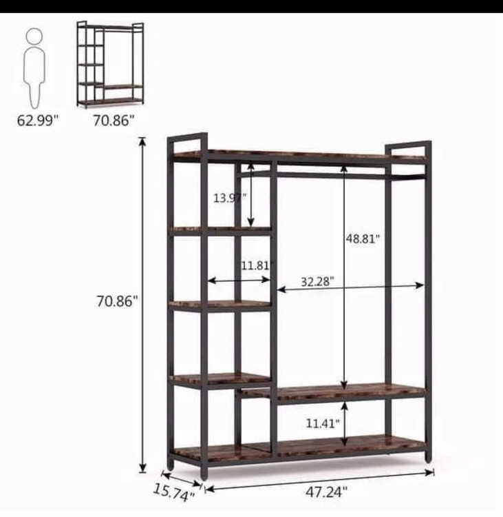 جدول مشخصات ابعاد 120x40x180 سانتیمتر وزن 12 کیلوگرم جنس بدنه چوب و فلز تعداد آویز 7 عدد سایر توضیحات ترکیب mdf و آهن با بهترین متریال