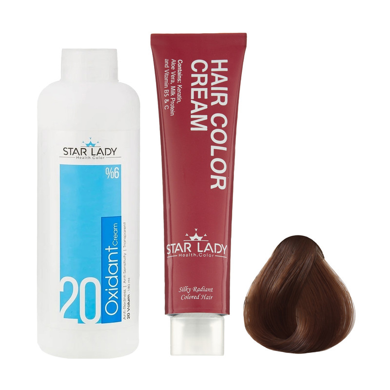 رنگ مو استارلیدی شماره 6.65 حجم 120 میلی لیتر رنگ بلوند شکلاتی تیره به همراه اکسیدان استارلیدی مدل 20 شش درصدی حجم 180 میلی لیتر
