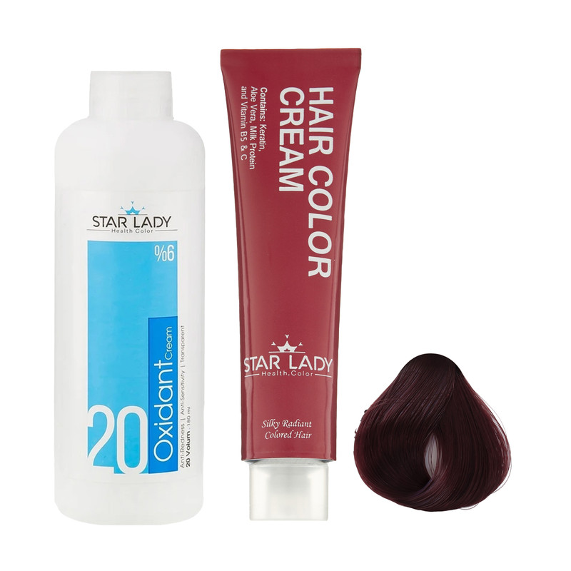 رنگ مو استارلیدی شماره 5.6 حجم 120 میلی لیتر رنگ ماهگونی تیره به همراه اکسیدان استارلیدی مدل 20 شش درصدی حجم 180 میلی لیتر