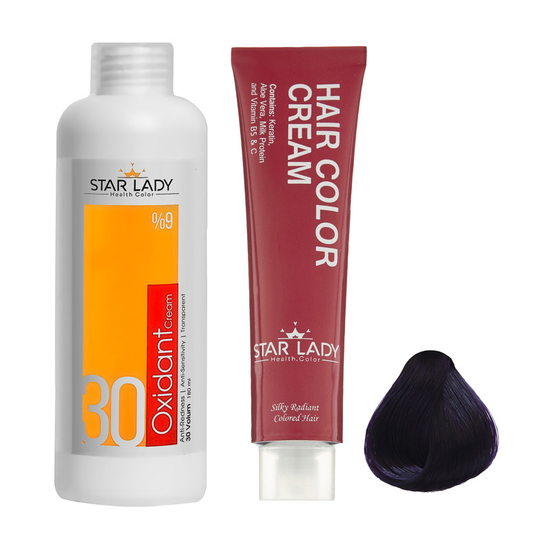 رنگ مو استارلیدی شماره 7.20 حجم 120 میلی لیتر رنگ بنفش فوق روشن به همراه اکسیدان استارلیدی مدل 30 نه درصدی حجم 180 میلی لیتر