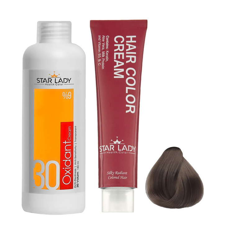 رنگ مو استارلیدی شماره 8.2 حجم 120 میلی لیتر رنگ بلوند دودی روشن به همراه اکسیدان استارلیدی مدل 30 نه درصدی حجم 180 میلی لیتر