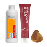رنگ مو استارلیدی شماره 10.02 حجم 120 میلی لیتر رنگ بلوند کاراملی فوق روشن به همراه اکسیدان استارلیدی مدل 30 نه درصدی حجم 180 میلی لیتر
