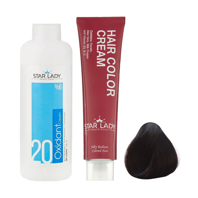 رنگ مو استارلیدی شماره 1.0 حجم 120 میلی لیتر رنگ مشکی به همراه اکسیدان استارلیدی مدل 20 شش درصدی حجم 180 میلی لیتر