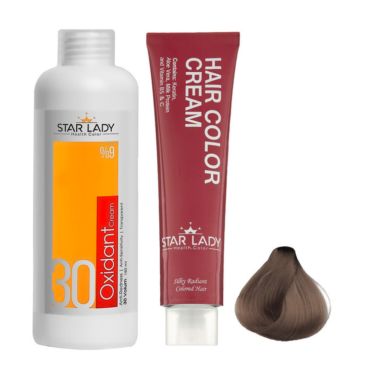 رنگ مو استارلیدی شماره 7.2 حجم 120 میلی لیتر رنگ بلوند دودی به همراه اکسیدان استارلیدی مدل 30 نه درصدی حجم 180 میلی لیتر