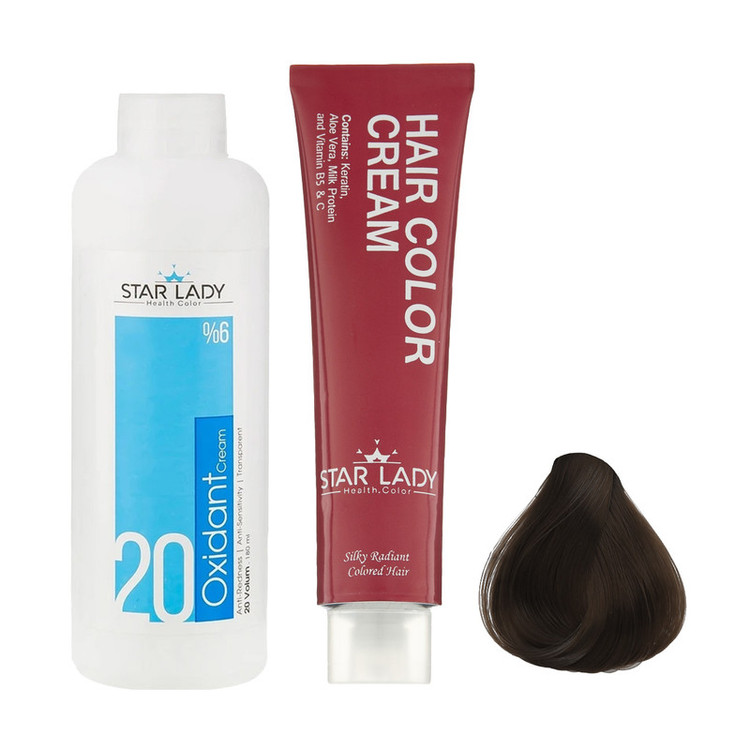 رنگ مو استارلیدی شماره 6.3 حجم 120 میلی لیتر رنگ بلوند زیتونی تیره به همراه اکسیدان استارلیدی مدل 20 شش درصدی حجم 180 میلی لیتر