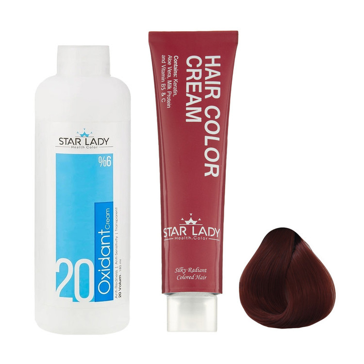 رنگ مو استارلیدی شماره 6.56 حجم 120 میلی لیتر رنگ دارچینی به همراه اکسیدان استارلیدی مدل 20 شش درصدی حجم 180 میلی لیتر