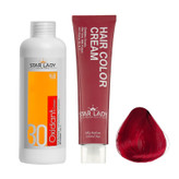 رنگ مو استارلیدی شماره 7.62 حجم 120 میلی لیتر رنگ قرمز توت فرنگی به همراه اکسیدان استارلیدی مدل 30 نه درصدی حجم 180 میلی لیتر